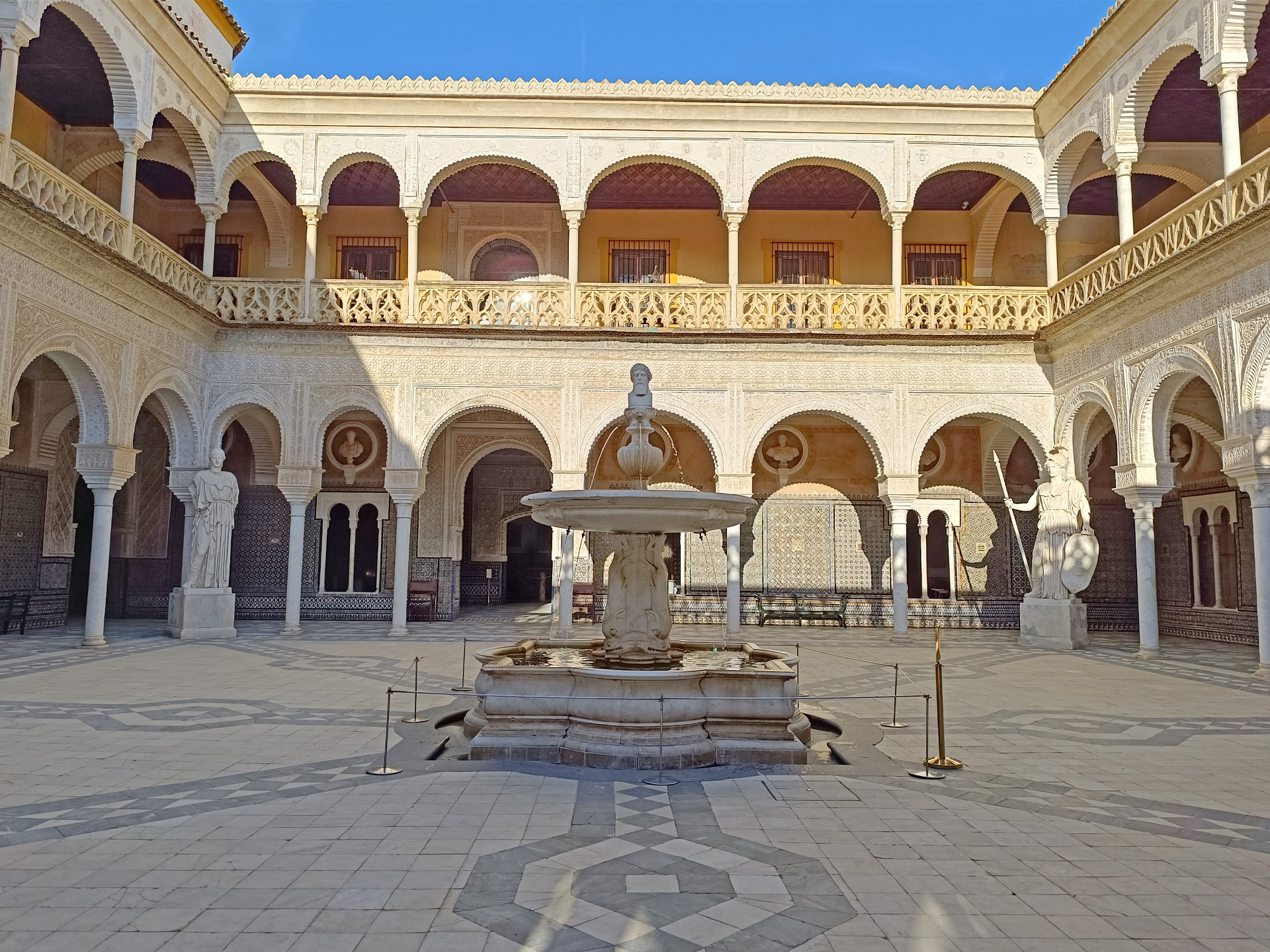 In Seville, the Casa de Pilatos, built in the 16th century, is the most outstanding example of Sevillian palace architecture. This building splendidly combines the Renaissance, Mudejar and Baroque styles. Its humanist character makes it a prototype of the Renaissance palace, whose interior fascinates us with the richness of the marbles and some of the most beautiful classical sculptures.